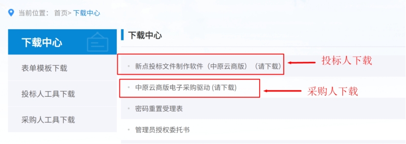 如果您是投标人,请下载“新点投标文件制作软件(中原云商版)”,其中包含投标文件制作工具以及平台所需驱动。